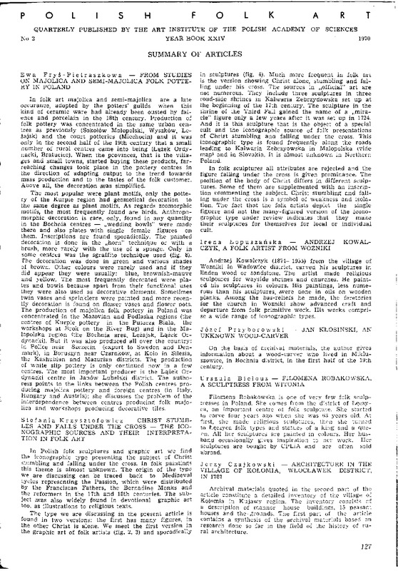 - Summaries / Polska Sztuka Ludowa - Konteksty 1970 t.24 z.2