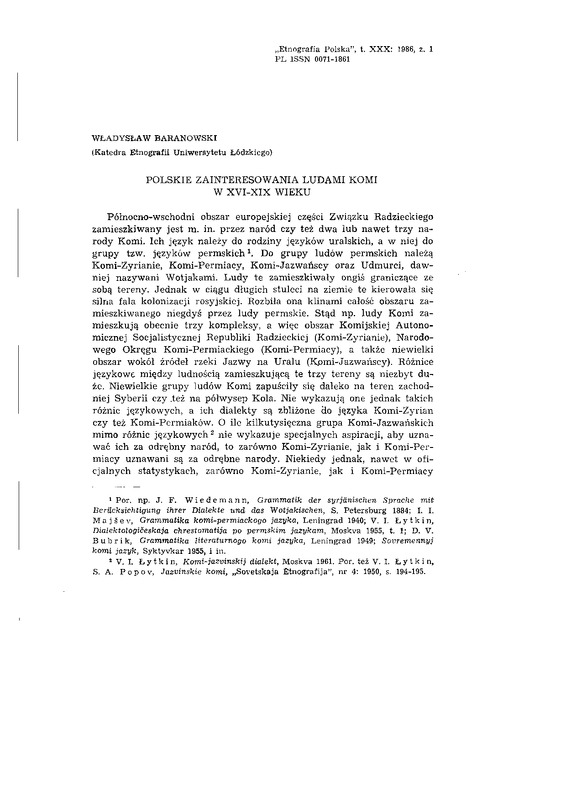 Polskie zainteresowanie ludami Komi w XVI-XIX wieku / ETNOGRAFIA POLSKA 1986 t.30 z.1