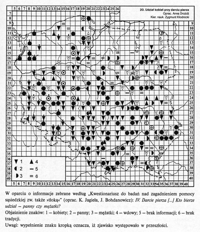 Udział kobiet przy darciu pierza/ Komentarze do Polskiego Atlasu Etnograficznego (mapy)