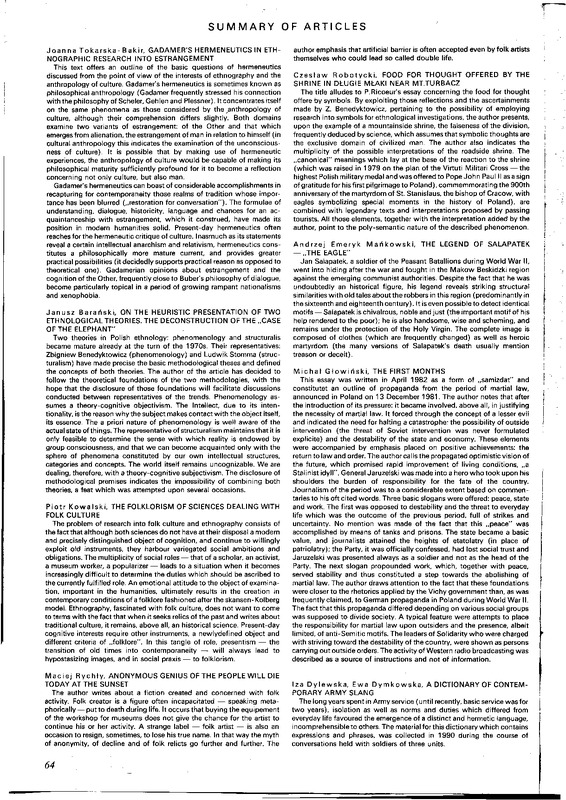 Summary of articles / Polska Sztuka Ludowa - Konteksty 1992 t.46 z.1