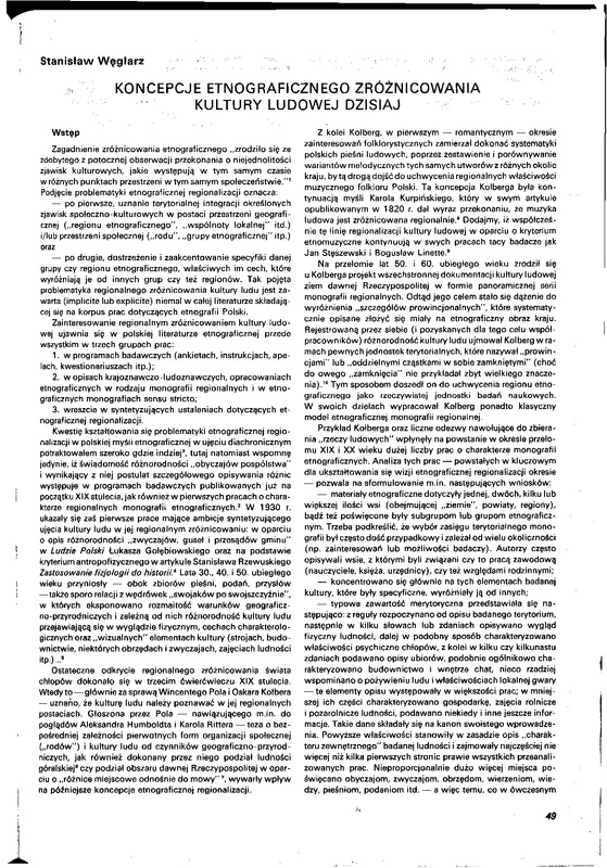 Koncepcje etnograficznego zróżnicowania kultury ludowej dzisiaj / Polska Sztuka Ludowa - Konteksty 1992 t.46 z.1