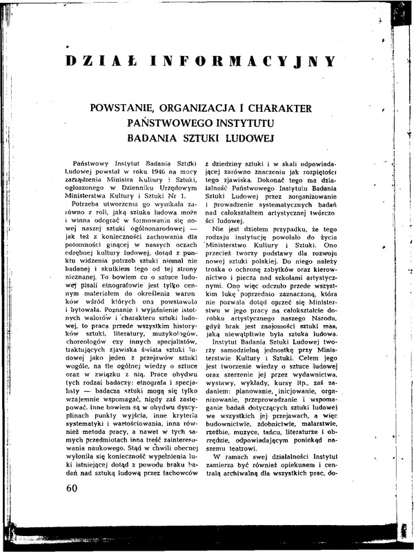 Dział informacyjny / Polska Sztuka Ludowa - Konteksty 1947 t.1, z.1-2