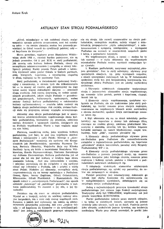 Aktualny stan stroju podhalańskiego/ Polska Sztuka Ludowa - Konteksty 1972 t.26 z.1
