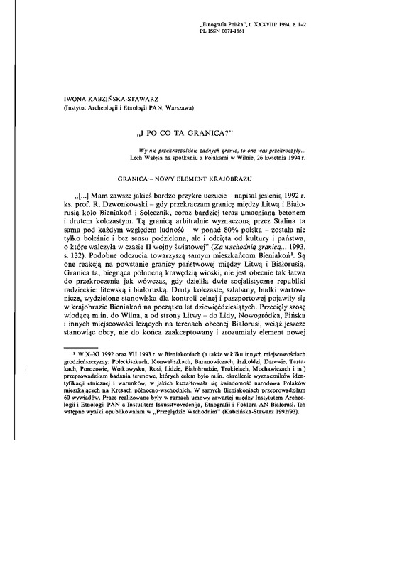 I po co ta granica? / ETNOGRAFIA POLSKA 1994 t.38