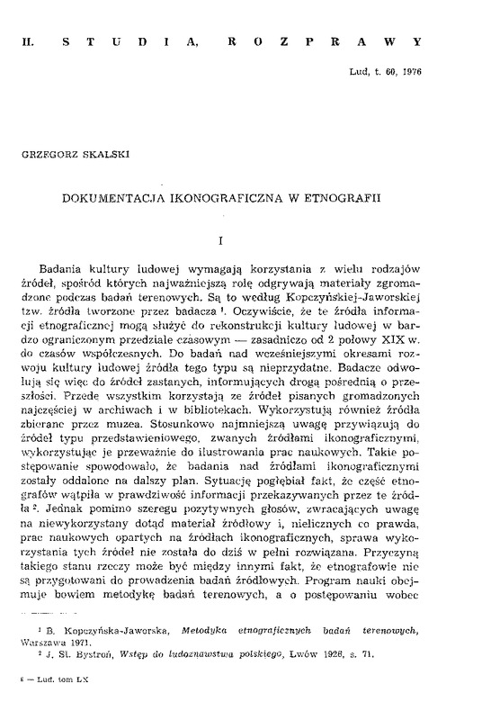 Dokumentacja ikonograficzna w etnografii / LUD 1976 t.60
