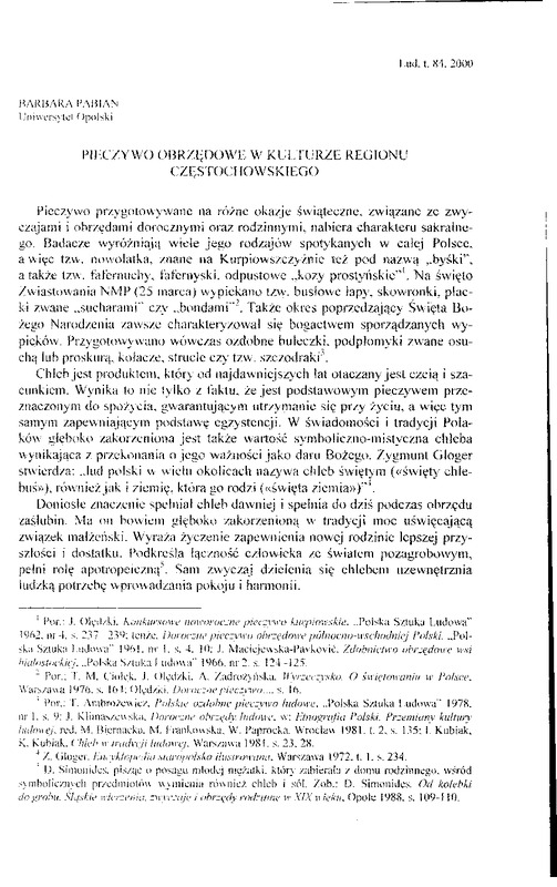 - Pieczywo obrzędowe w kulturze regionu częstochowskiego / LUD 2000 t.84