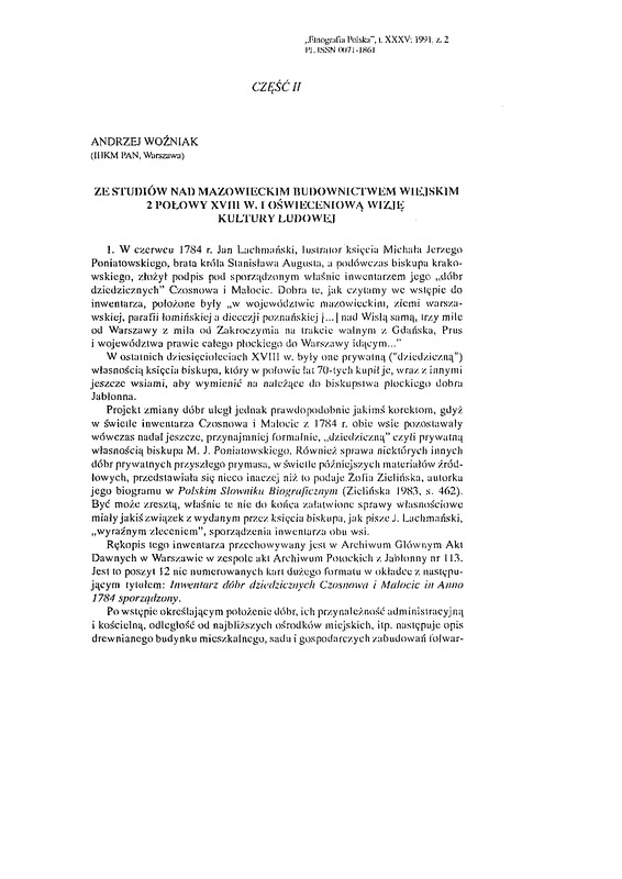 Ze studiów nad mazowieckim budownictwem wiejskim drugiej połowy XVIII w. i oswieceniową wizją kultury ludowej / ETNOGRAFIA POLSKA 1991 t.35 z.2