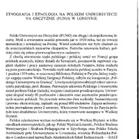 Etnografia i etnologia na Polskim Uniwersytecie na obczyźnie (PUNO)w Londynie / LUD 2005 t.89