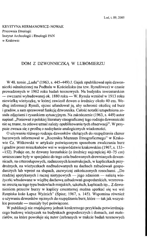 - Dom z dzwonniczką w Lubomierzu / LUD 2005 t.89