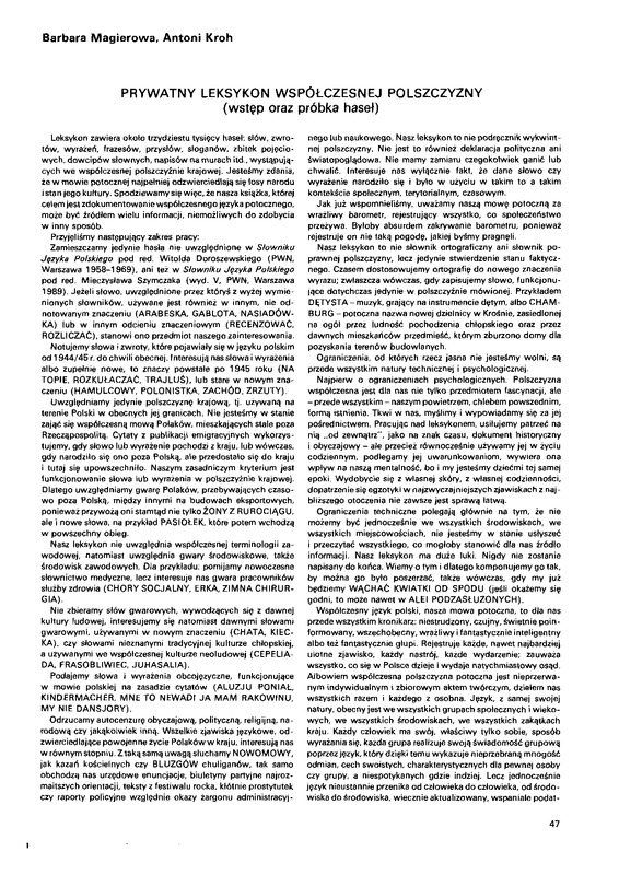 - Prywatny leksykon współczesnej polszczyzny / Polska Sztuka Ludowa - Konteksty 1991 t.45 z.1