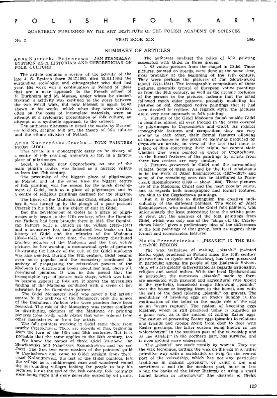 - Summary of articles/ Polska Sztuka Ludowa - Konteksty 1965 t.19 z.2