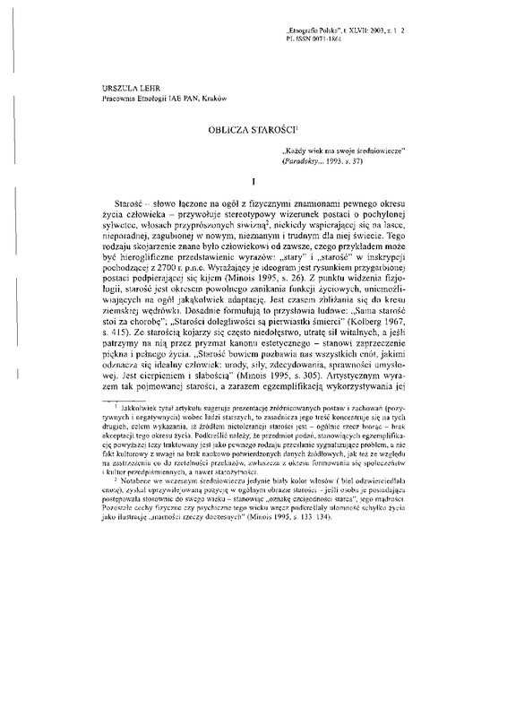 Oblicza starości / ETNOGRAFIA POLSKA 2003 t.47