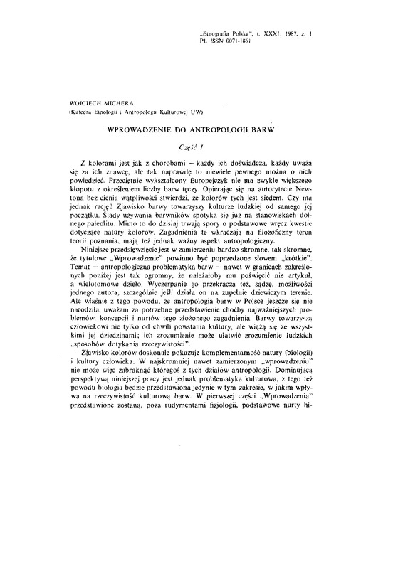 - Wprowadzenie do antropologii barw / ETNOGRAFIA POLSKA 1987 t.31 z.1