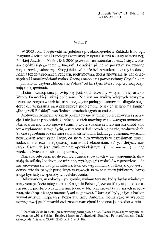 - Wstęp / ETNOGRAFIA POLSKA 2006 t.50