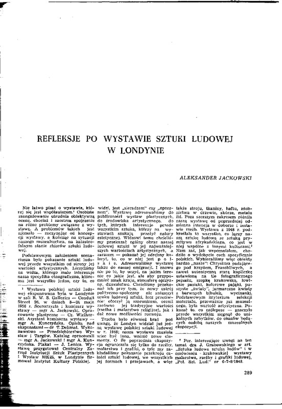 - Refleksje po wystawie sztuki ludowej w Londynie / Polska Sztuka Ludowa - Konteksty 1956 t.10 z.6