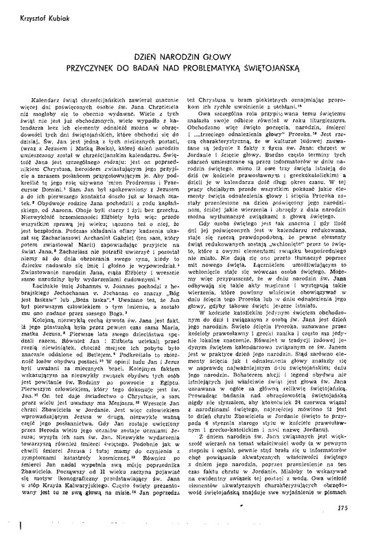 dzień narodzin Głowy. Przyczynek do badań nad problematyką świętojańską / Polska Sztuka Ludowa - Konteksty 1983 t.37 z.3-4