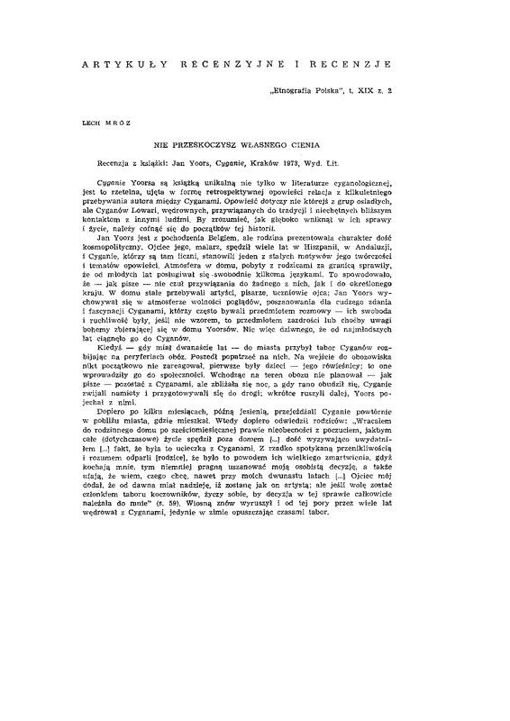 - Artykuły recenzyjne i recenzje / ETNOGRAFIA POLSKA 1975 t.19 z.2