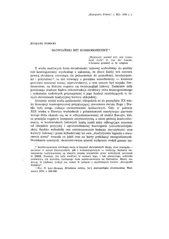 - Słowiański mit kosmogoniczny / ETNOGRAFIA POLSKA 1976 t.20 z.1