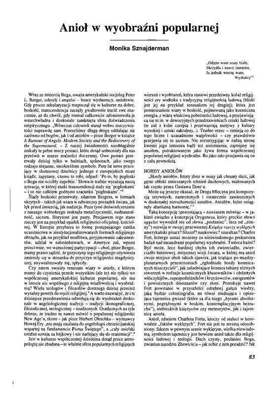 - Anioł w wyobraźni popularnej / Polska Sztuka Ludowa - Konteksty 1997 t.51 z.3-4
