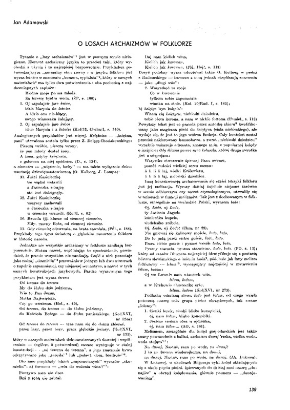 O losach archaizmów w folklorze / Polska Sztuka Ludowa - Konteksty 1987 t.41 z.1-4