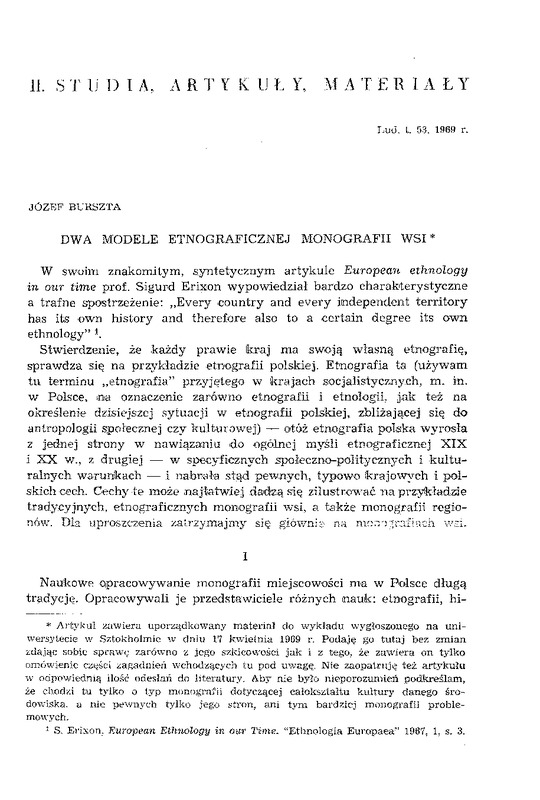 Dwa modele etnograficznej monografii wsi / LUD 1969 t.53