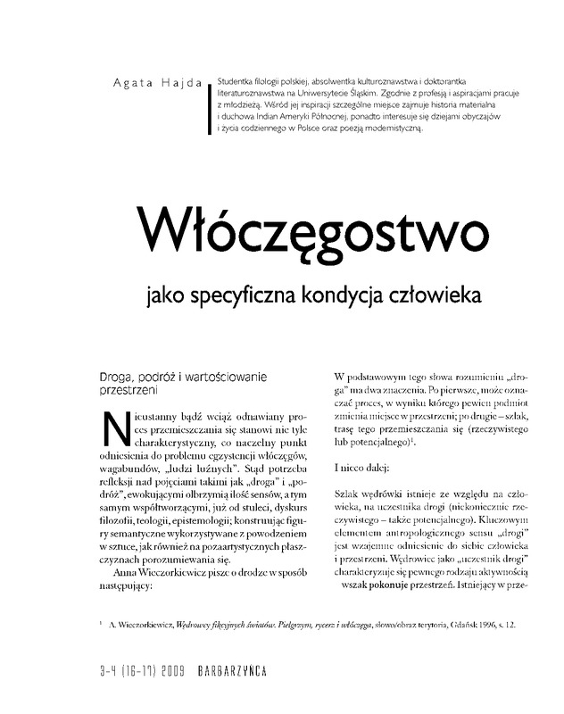 - Włóczęgostwo jako specyficzna kondycja człowieka/ Barbarzyńca 2009 nr 3-4 (16-17)