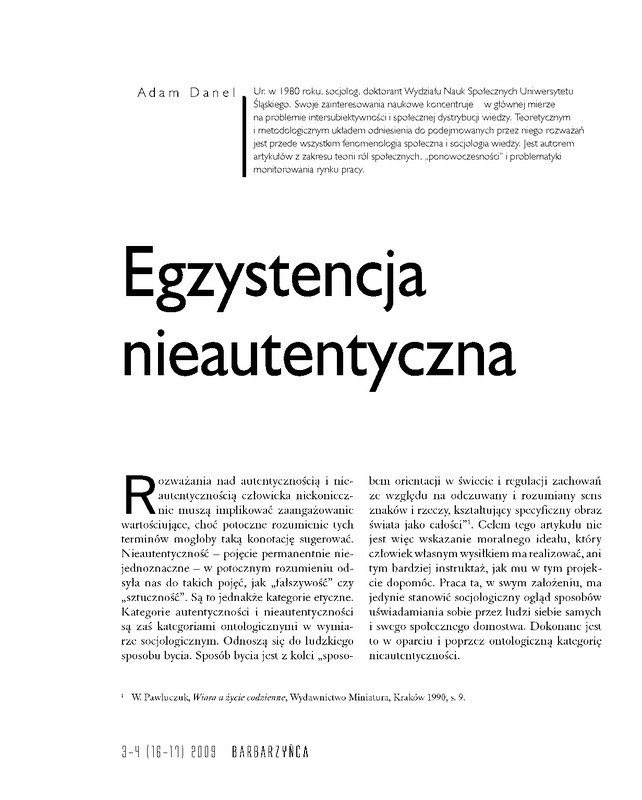 Egzystencja nieautentyczna/ Barbarzyńca 2009 nr 3-4 (16-17)