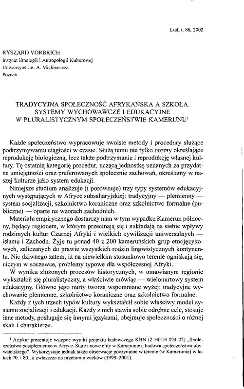 - Tradycyjna społeczność afrykańska a szkola/ LUD 2002 t.86