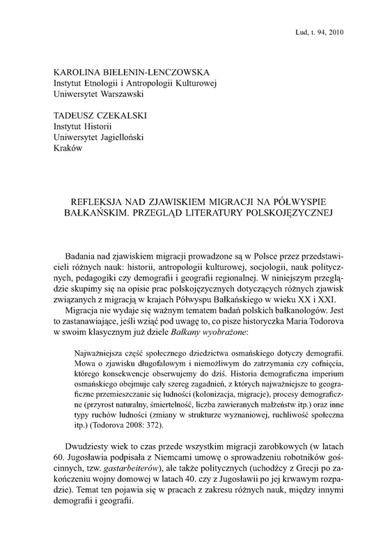 Refleksja nad zjawiskiem migracji na Półwyspie Bałkańskim/ LUD 2010 t.94