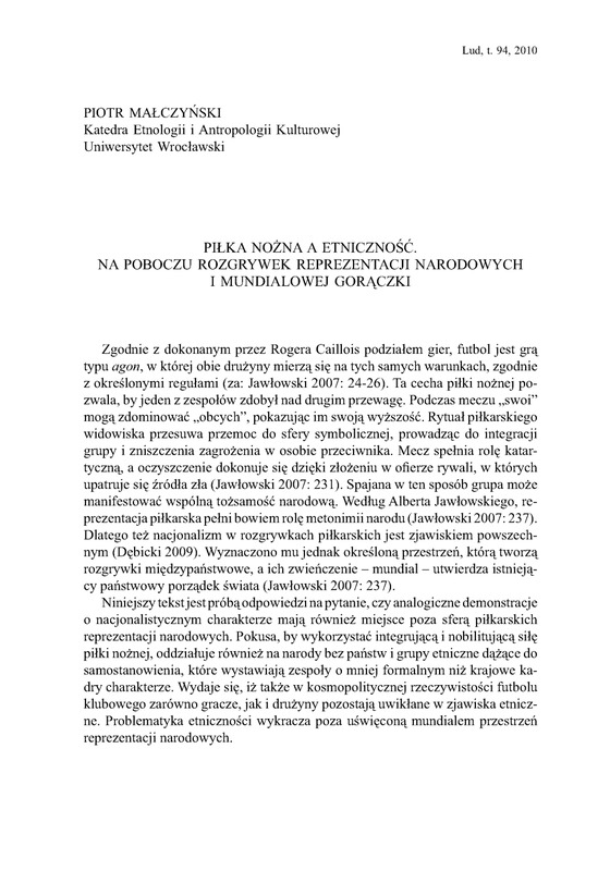 - Piłka nożna a etniczność/ LUD 2010 t.94