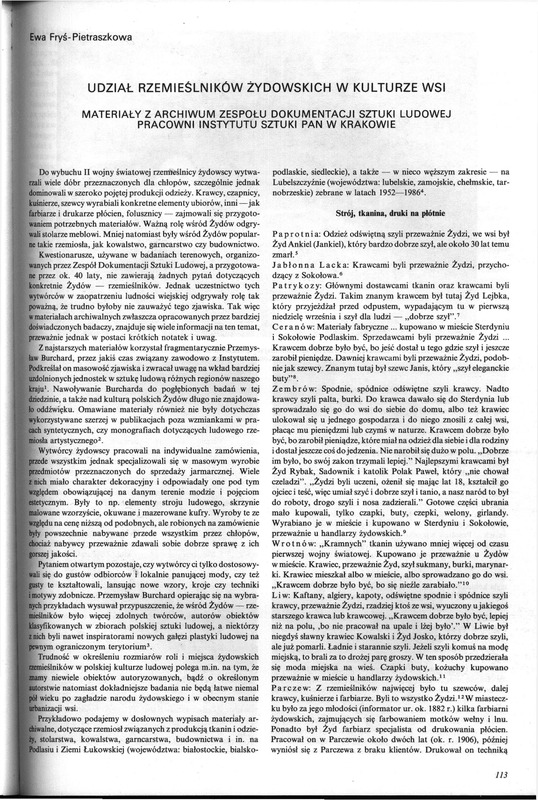 Udział rzemieślników żydowskich w kulturze wsi. Materiały / Polska Sztuka Ludowa - Konteksty 1989 t.43 z.1-2
