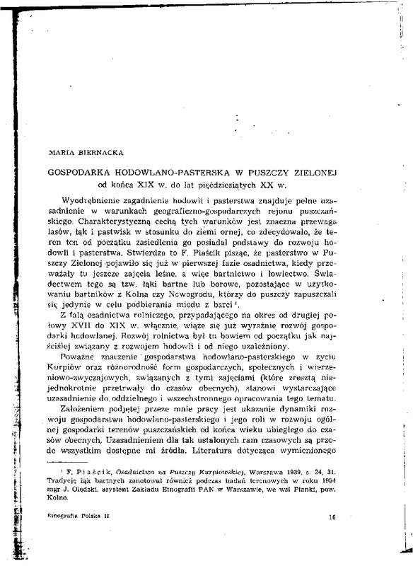 Gospodarka hodowlano-pasterska w Puszczy Zielonej (od końca XIX w. do lat pięćdziesiątych XX w.) / ETNOGRAFIA POLSKA 1959 t.2