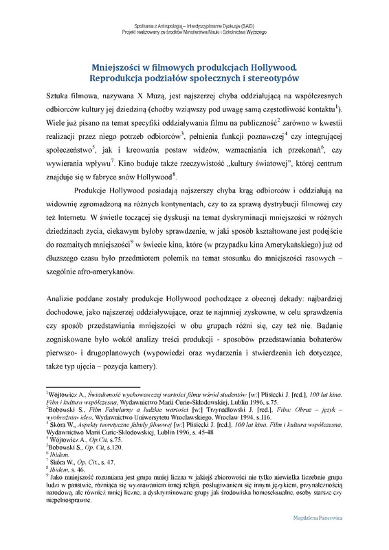 Mniejszości w filmowych produkcjach Hollywood. Reprodukcja podziałów społecznych i stereotypów / SAID