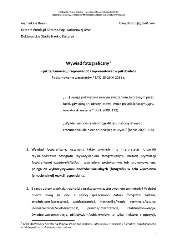 - Wywiad fotograficzny - jak zaplanować, przeprowadzić i zaprezentować wyniki badań? / SAID