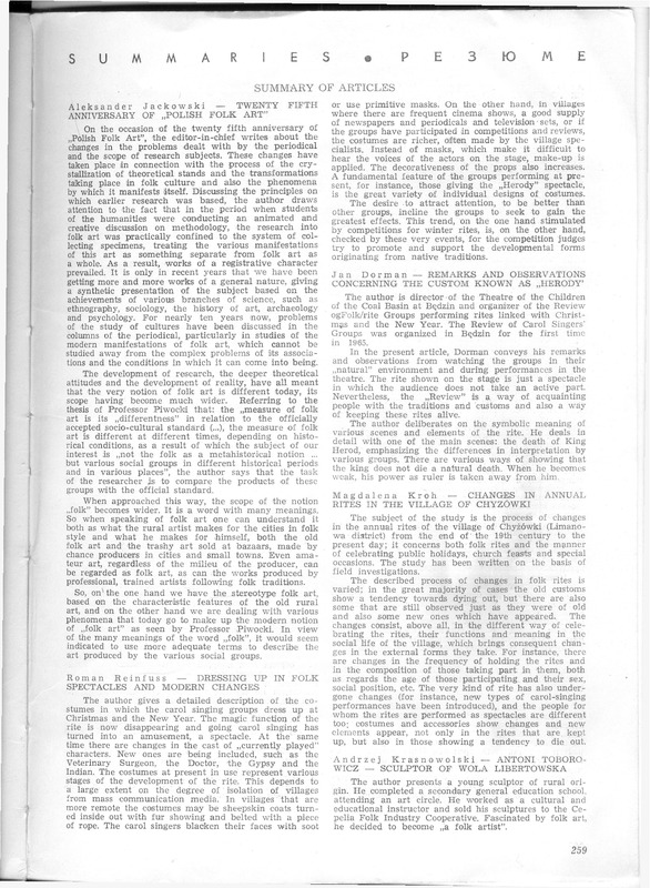Summaries / Polska Sztuka Ludowa - Konteksty 1971 t.25 z.3