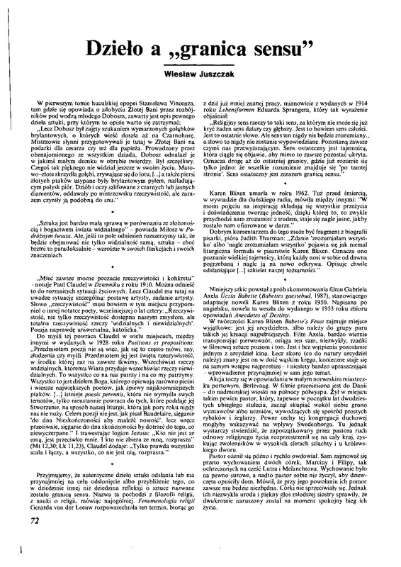 - Dzieło a "granice sensu" / Polska Sztuka Ludowa - Konteksty 1992 t.46 z.3-4