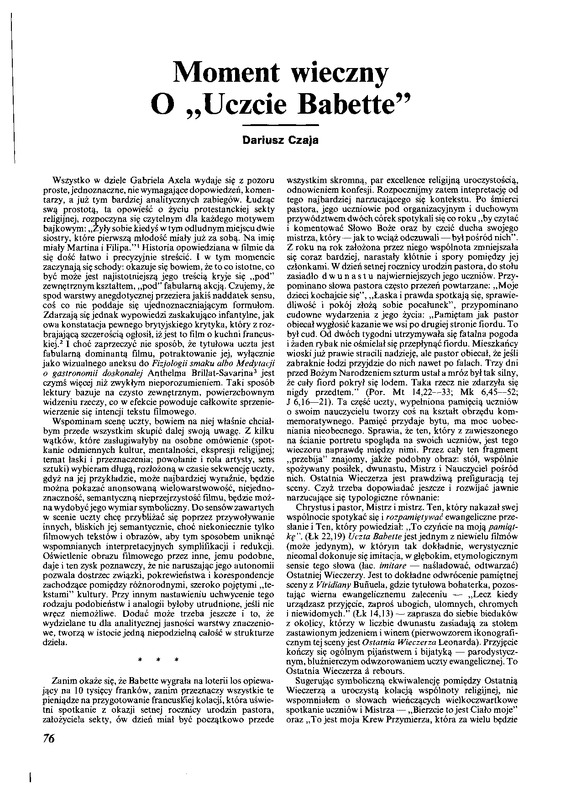 - Moment Wieczny. O "Uczcie Babette" / Polska Sztuka Ludowa - Konteksty 1992 t.46 z.3-4