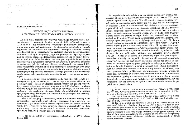- Wyrok sądu owczarskiego z Zachodniej Wielkopolski z konca XVIII w./ LUD 1954 t.41
