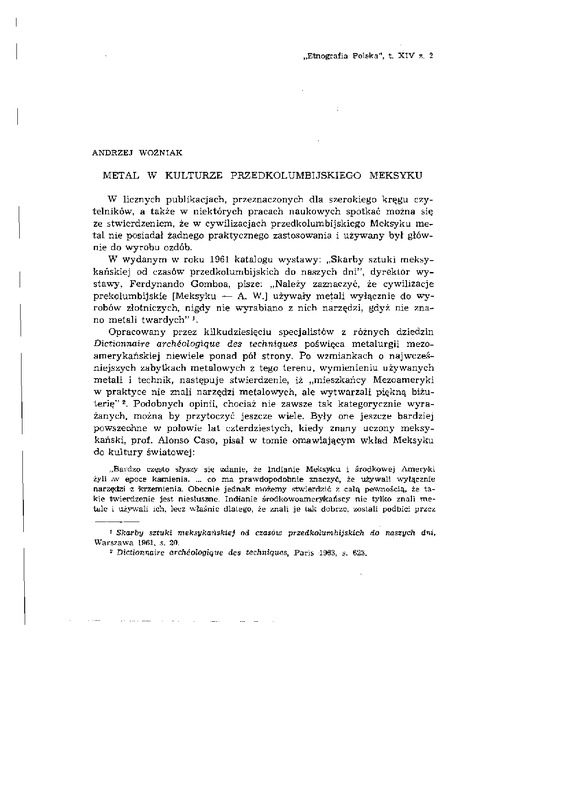 Metal w kulturze przedkolumbijskiego Meksyku / ETNOGRAFIA POLSKA 1970 t.14 z.2