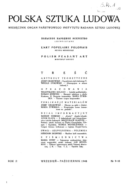 - Polska Sztuka Ludowa 1948 t.2 z.9-10; s.1-2