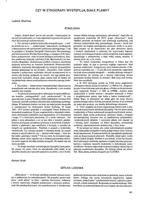 - Czy w etnografii występują białe plamy? / Polska Sztuka Ludowa - Konteksty 1989 t.43 z.4