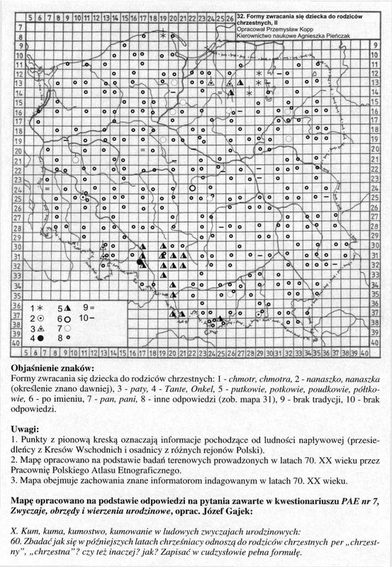 Formy zwracania się dziecka do rodziców chrzestnych, II/ Komentarze do Polskiego Atlasu Etnograficznego (mapy)