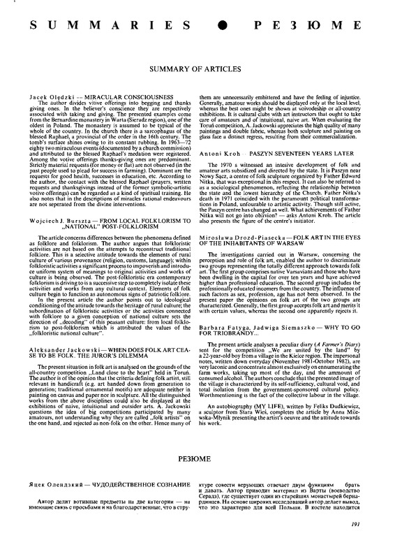 Summary of articles / Polska Sztuka Ludowa - Konteksty 1989 t.43 z.3