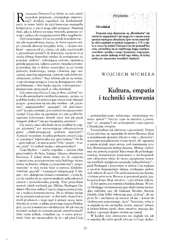 Kultura, empatia i techniki skrawania / Polska Sztuka Ludowa - Konteksty 2002 t.56 z.3-4