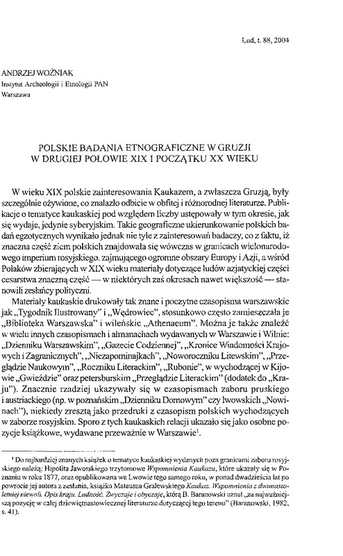 Polskie badania etnograficzne w Gruzji w drugiej polowie XIX i na początku XX wieku/ LUD 2004 t.88
