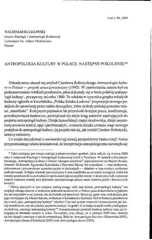 - Antropologia kultury w Polsce - następne pokolenie / LUD 2004 t.88