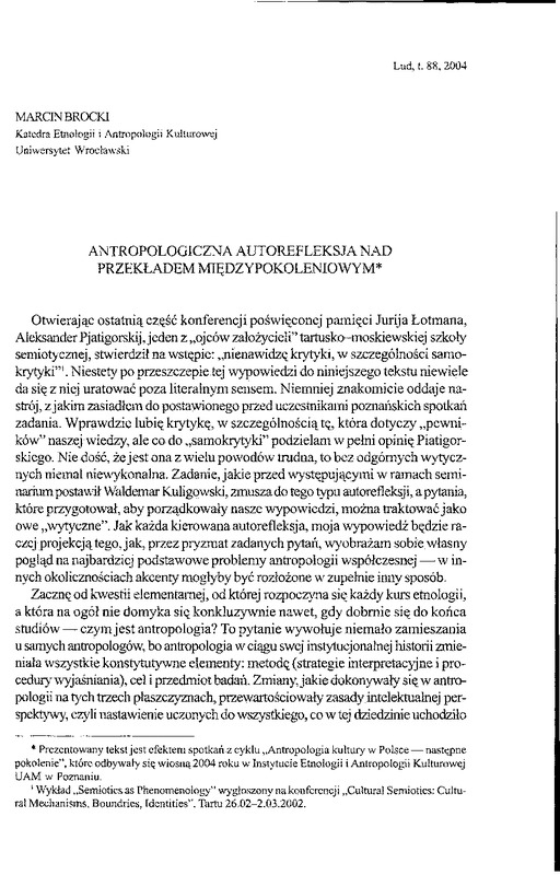 Antropologiczna autorefleksja nad przekładem międzypokoleniowym / LUD 2004 t.88