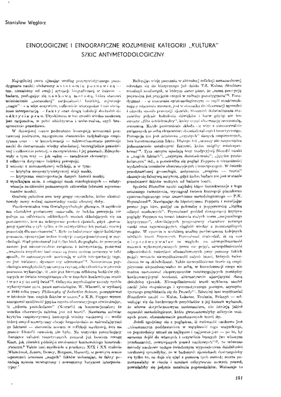 Etnologiczne i etnograficzne rozumienie kategorii "kultura". Szkic antymetodologiczny / Polska Sztuka Ludowa - Konteksty 1987 t.41 z.1-4