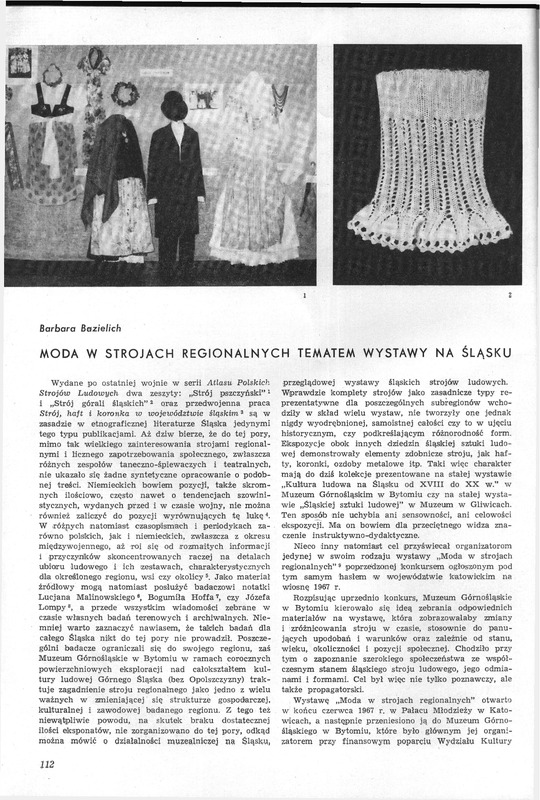 Moda w strojach regonalnych tematem wystawy na Śląsku / Polska Sztuka Ludowa - Konteksty 1968 t.22 z.3