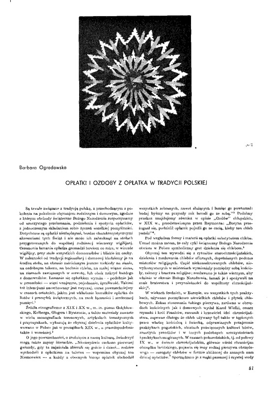 - Opłatki i ozdoby z opłatka w tradycji polskiej / Polska Sztuka Ludowa - Konteksty 1988 t.42 z.1-2
